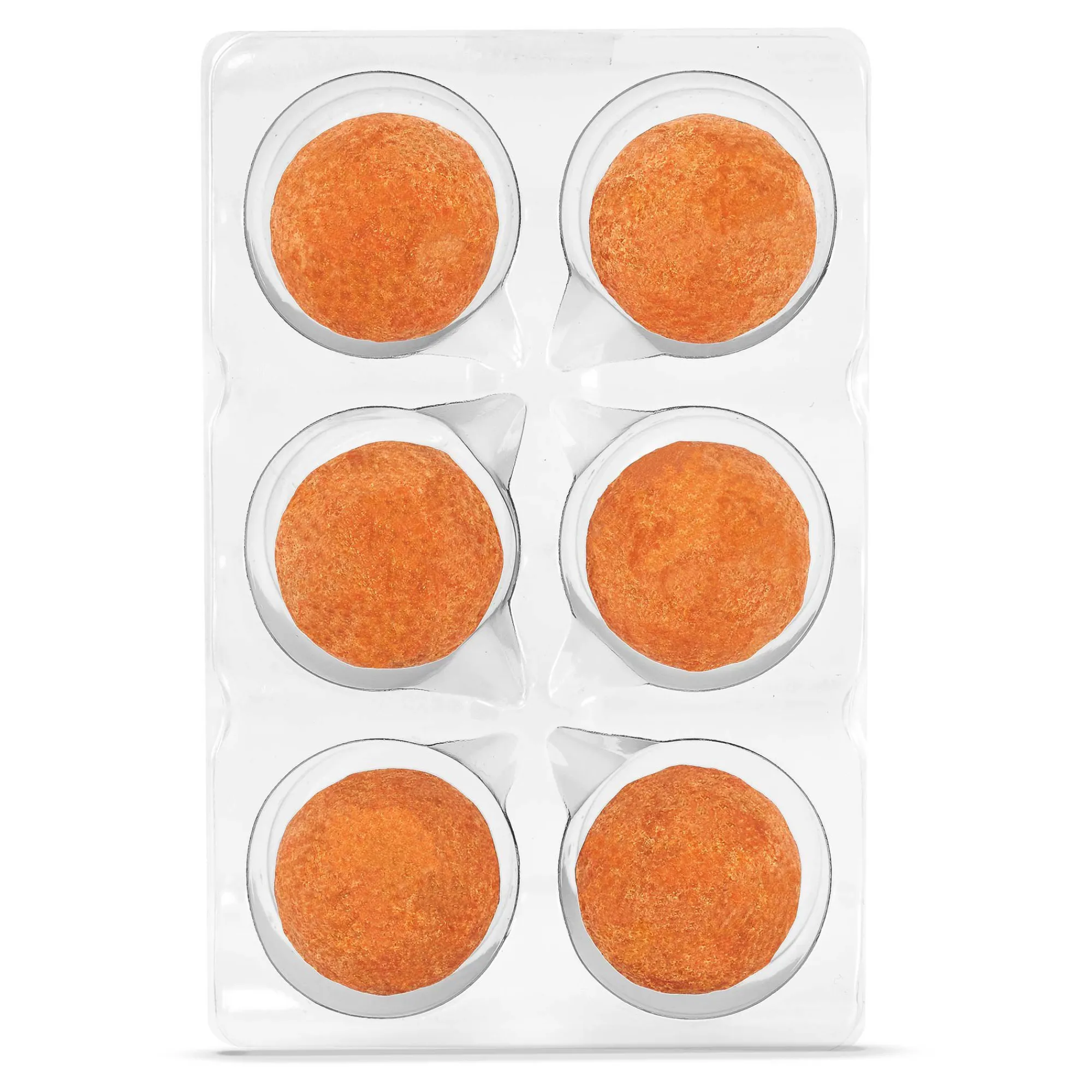 Our chocolatiers spent months in our Inventing Room to capture and elevate the distinctive citrus notes, experimenting with different grades before settling on our signature mellow 40% milk chocolate for our Grand Mimosa’s zippy yet snappable orange cacao shell (delicately coated with our house white chocolate and panned to create a naturally vibrant orange hue – no artificial colours here).
