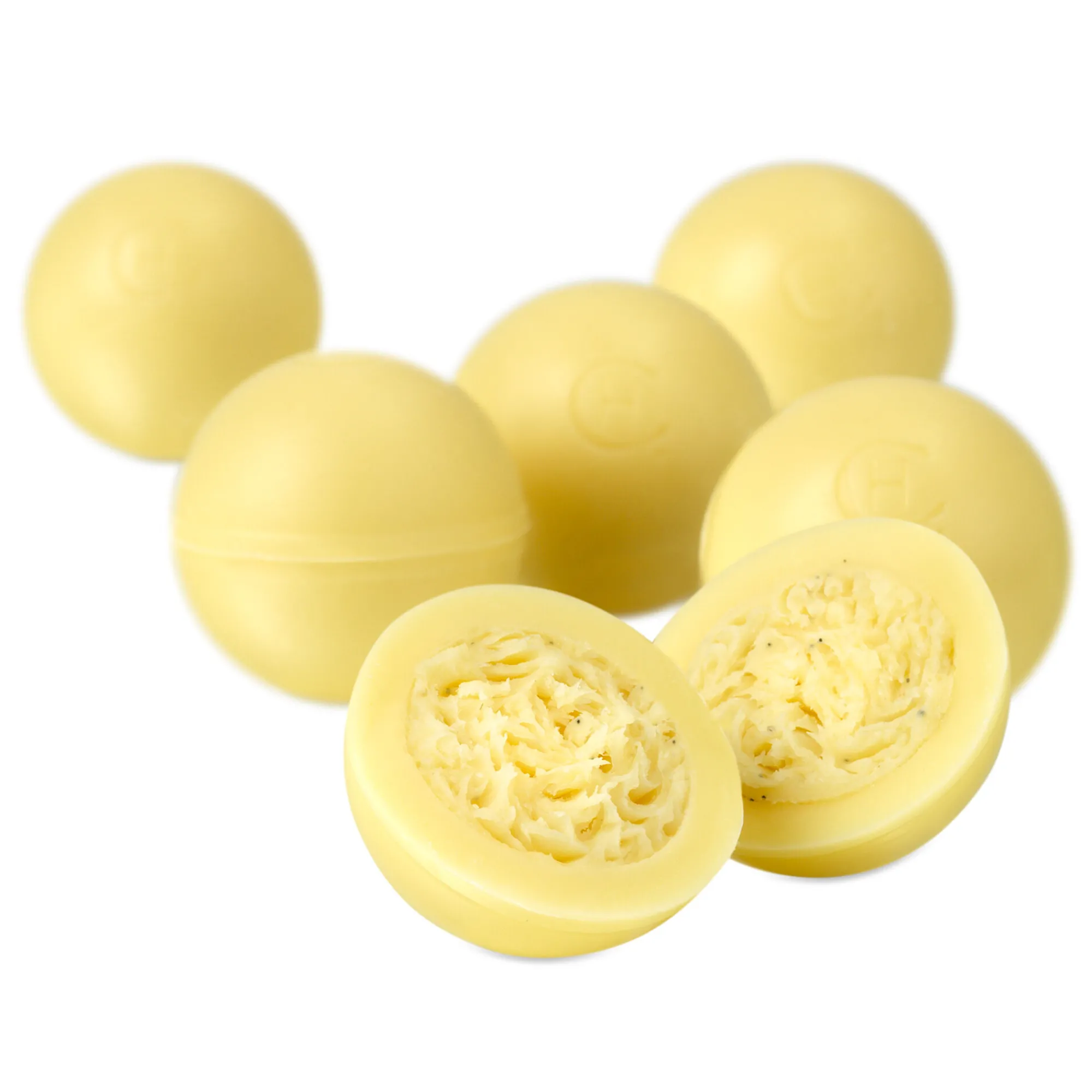 We’ve encased this Simple White Chocolate Truffle Selector in our classic white chocolate, which we are particularly proud of. We’ve looked, but we can’t find anything on the market with as much cocoa butter and as little sugar as our own.